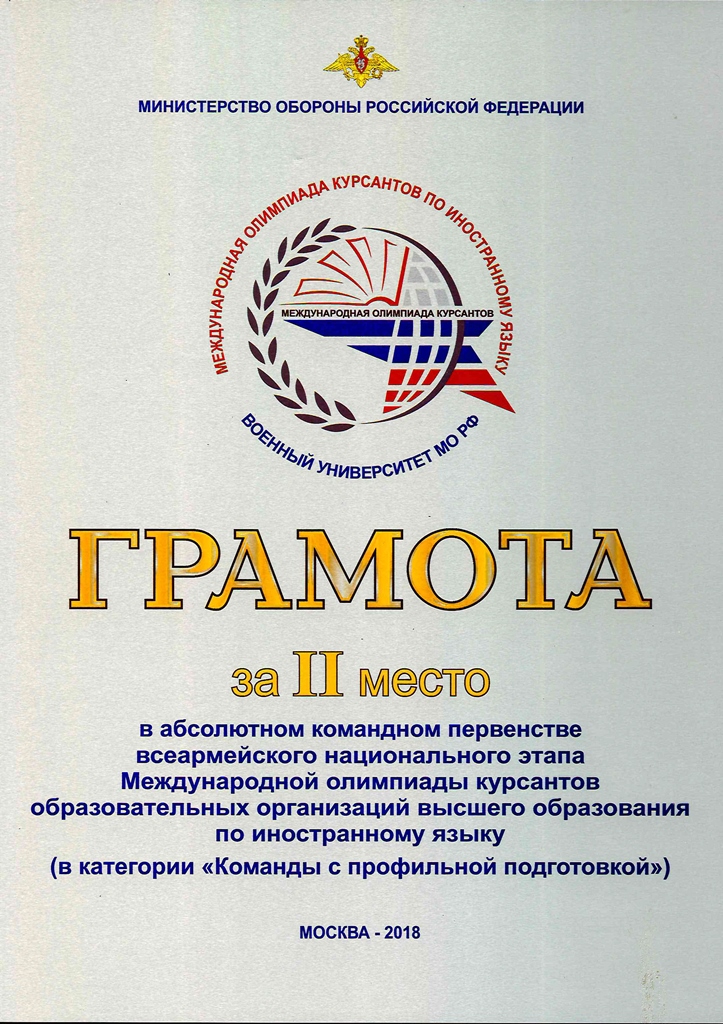 Команда ТГУ заняла II место в командном зачете во всеармейском этапе IV Международной олимпиады среди курсантов высших военно-учебных заведений Минобороны РФ по иностранному языку. Студент ФИЯ и учебного военного центра (УВЦ) Данил Белов также стал вторым в индивидуальном первенстве.