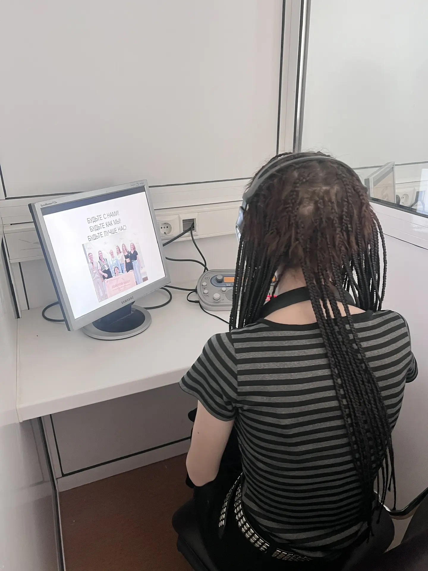 1 апреля на факультете иностранных языков состоялся мастер-класс по синхронному переводу. Будущие абитуриенты получили уникальную возможность попробовать себя в роли синхронистов. Провела мастер-класс опытный наставник - Надежда Ивановна Маругина, доцент ФИЯ, вместе с действующими профессионалами своего дела - магистрантами второго курса. Гостям не просто рассказали о тонкостях профессии, но и дали поработать в настоящей кабине синхронного перевода. Десять абитуриентов освоили специальные техники для развития «многозадачности» мозга, необходимые синхронисту. Попробовали свои силы в режиме реального времени, переводя звуковой поток следом за диктором. Услышали из первых уст опыт студентов, узнали о подводных камнях и секретах мастерства. Пока это был тренировочный формат, но кто знает, возможно, именно с этой пробы начался путь к будущей блестящей карьере.